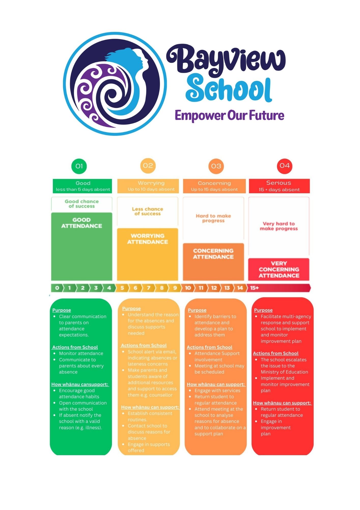 Our Attendance Management Plan outlines our approach to identifying, understanding, and responding to student absences and is designed to be a proactive and compassionate framework to support our learners and whānau.